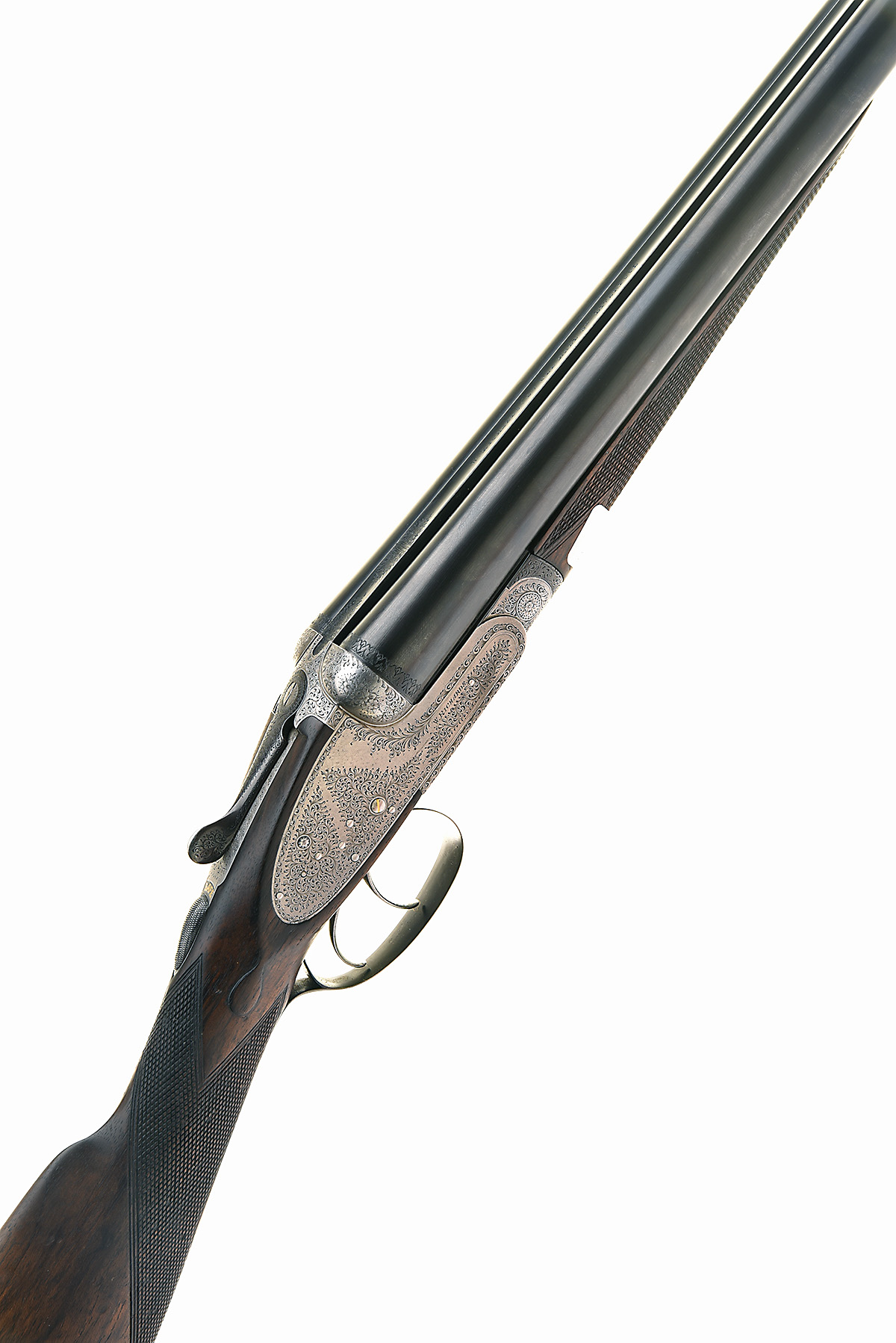 W. RICHARDS 12-BORE SIDELOCK EJECTOR, serial no. 9246, for 1900, 28 1/8in. sleeved nitro barrels (in 1977), the rib re-engraved 'W. RICHARDS. 27 OLD HALL ST. LIVERPOOL.', 2 1/2in. chambers, bored approx. 1/2 and full choke, treble-grip action, automatic safety with gold-inlaid 'SAFE' detail, gold-inlaid cocking-indicators, fine acanthus scroll engraving, brushed bright and reblued finish overall, 14 3/8in. figured stock, weight 6lb. 9oz.