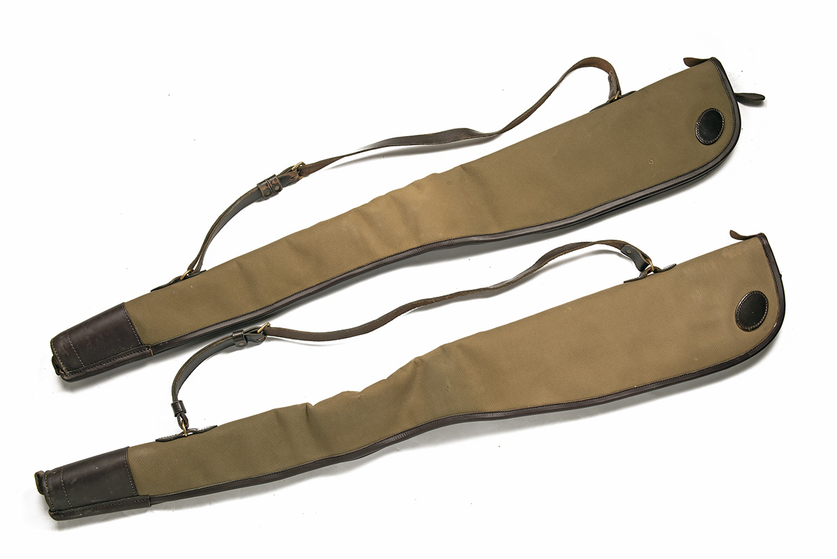 WILLIAM EVANS A PAIR OF FLEECE-LINED GREEN CANVAS AND LEATHER GUNSLIPS,