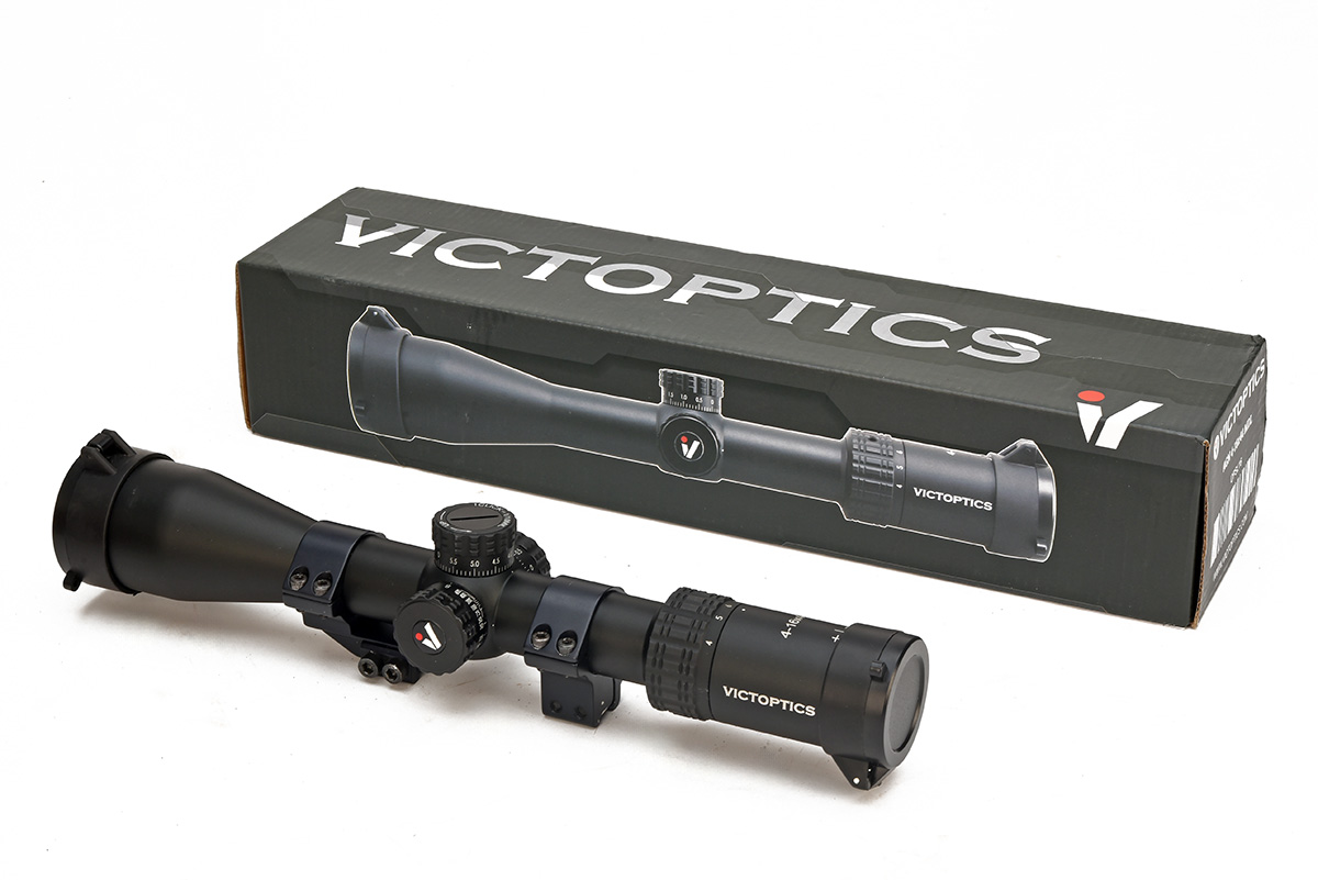 A 'VECTOR VICTOPTICS' AND 'RICHTER OPTIK' RIFLE SCOPE IN BOX, 1 lightly used 'VICTOPTICS' AGN 4-16x44 scope, serial no. OPSL16, flip-up front and back lens cover, weaver scope mount, MDL reticle in original box, 1 lightly used 'RICHTER OPTIK' 6x40 scope, serial no. 215109flip-up front and back lens cover, scope mounts, fine crosshair reticle in original box, untested (2)