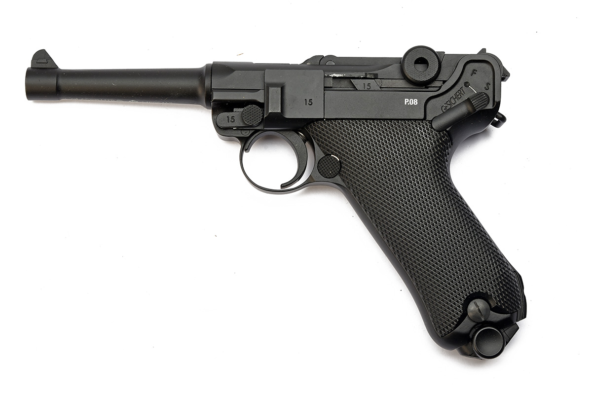 A BOXED .177 PARABELLUM P08 LUGER CO2-POWERED AIR PISTOL, serial no. 14G06418.