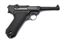 A BOXED .177 PARABELLUM P08 LUGER CO2-POWERED AIR PISTOL, serial no. 14G06418. in the likeness of the 4in. barrelled service pistol, untested but appearing little used in its maker's card and polystyrene carton