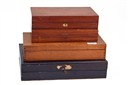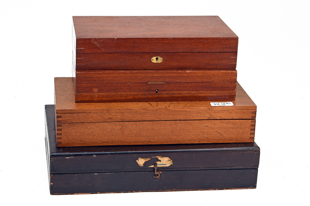 FOUR VARIOUS WOODEN CASES, 1 approx. 16 3/4in. x 11 1/2in. x 3 1/2in. 1 approx. 16in. x 8 1/4in. x 3in. 1 approx. 13in. x 7 1/2in. x 2 1/2in. lockable (key missing) 1 approx. 13in. x 7 1/2in. x 2 1/2in. lockable (key missing) fitting for pistol, green cloth lined (4)