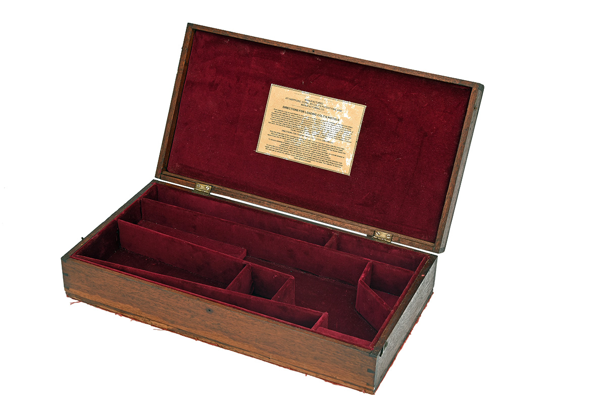 A WOODEN HAND GUN CASE FITTED FOR COLT REVOLVER,