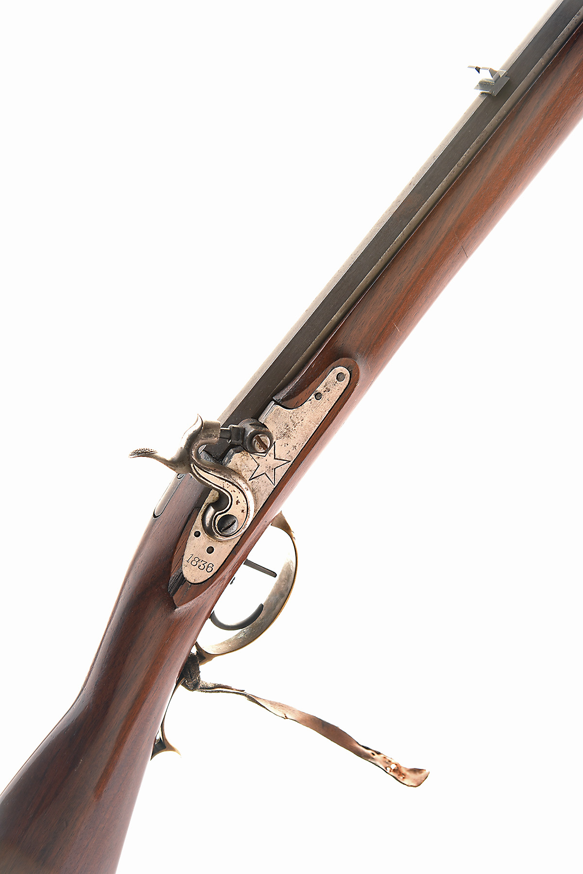 A REPRODUCTION .50 PERCUSSION SHOTGUN, UNSIGNED, MODEL 'ALAMO LONG RIFLE', serial no. 25643, with octagonal 36in. sighted barrel, plain lock engraved with a five-pointed star, Kentucky style walnut full-stock and brass furniture