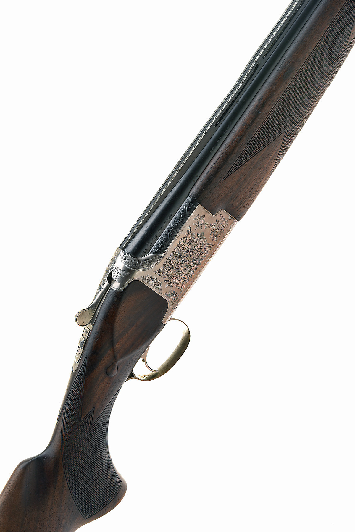 B.C. MIROKU 12-BORE '6000 GRADE-III' SINGLE-TRIGGER OVER AND UNDER EJECTOR, serial no. 86036PYSP3, dated 1982, 29in. nitro barrels with 13mm ventilated matt top-rib (dented), 2 3/4in. chambers, bored approx. imp. cyl. and 1/2 choke, hold-open toplever, manual safety with integral barrel selector switch, beaded border and acanthus scroll engraving, silver finish, 14 1/4in. pistolgrip stock (worn) including buttplate, weight 7lb. 11oz.