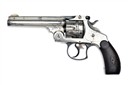 frame manufactured pre 1899, with nickel-plated 5in. barrel, raised sighting rib stamped with makers details and patent dates to 1880, crescent fore-sight, notch rear-sight, fluted automatic ejection cylinder, break-open frame, blued trigger guard, colour hardened trigger-blade and hammer, chequered walnut grips (rubbed), strong amount of original plated finish throughout, with certificate of proof