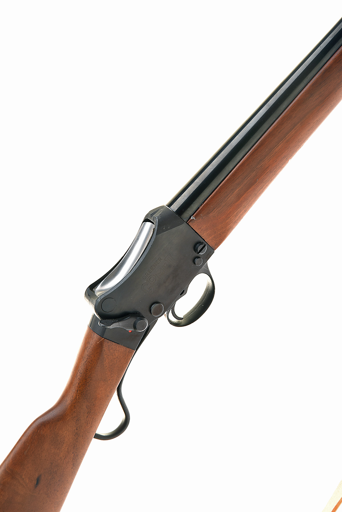 W.W. GREENER 12-BORE 'GP MKII' MARTINI-ACTION SHOTGUN, serial no. G80817, for 1977, 32in. nitro ribless barrel, 2 3/4in. chamber, bored approx. full choke, automatic sidelever safety, plain blacked action, 14 1/4in. stock including trademark buttplate