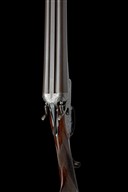 circa 1874, 29in. nitro reproved fine damascus barrels, the rib engraved 'WM. CASHMORE. MAKER. BIRMINGHAM.', 2 1/2in. chambers, bored approx. 1/4 and imp. cyl. choke, treble-grip action with carved percussion fences, rebounding sidelocks, the triggerguard tang forming a skeletal pistolgrip, fine border and acanthus scroll engraving, 14in. figured (likely historic replacement) stock including horn buttplate, fore-end with Deeley & Edge patent release and horn finial, weight 6lb. 7oz.