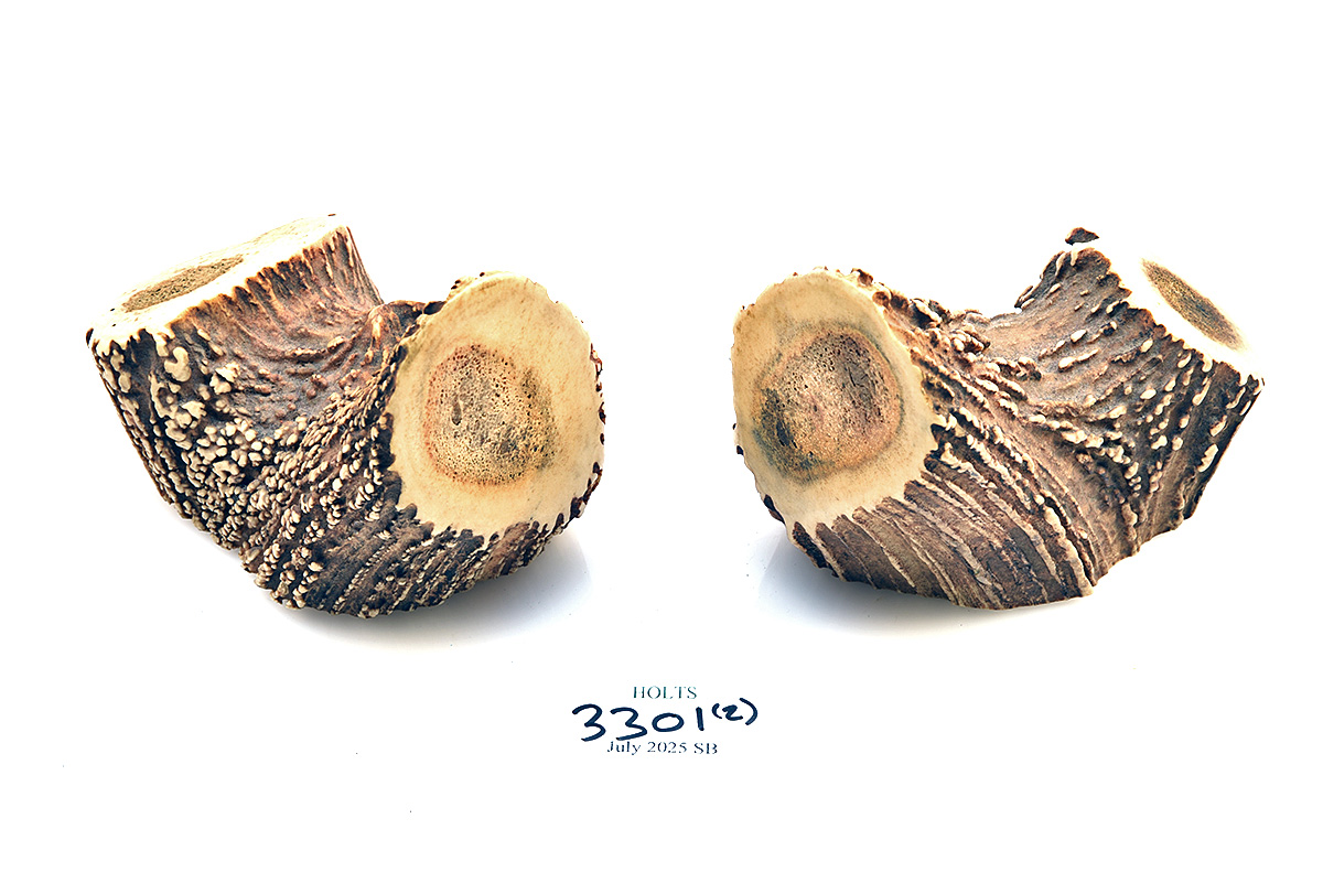 A PAIR OF RED DEER ANTLER BOOK-ENDS, approx. 4in. x 4in. x 3in.