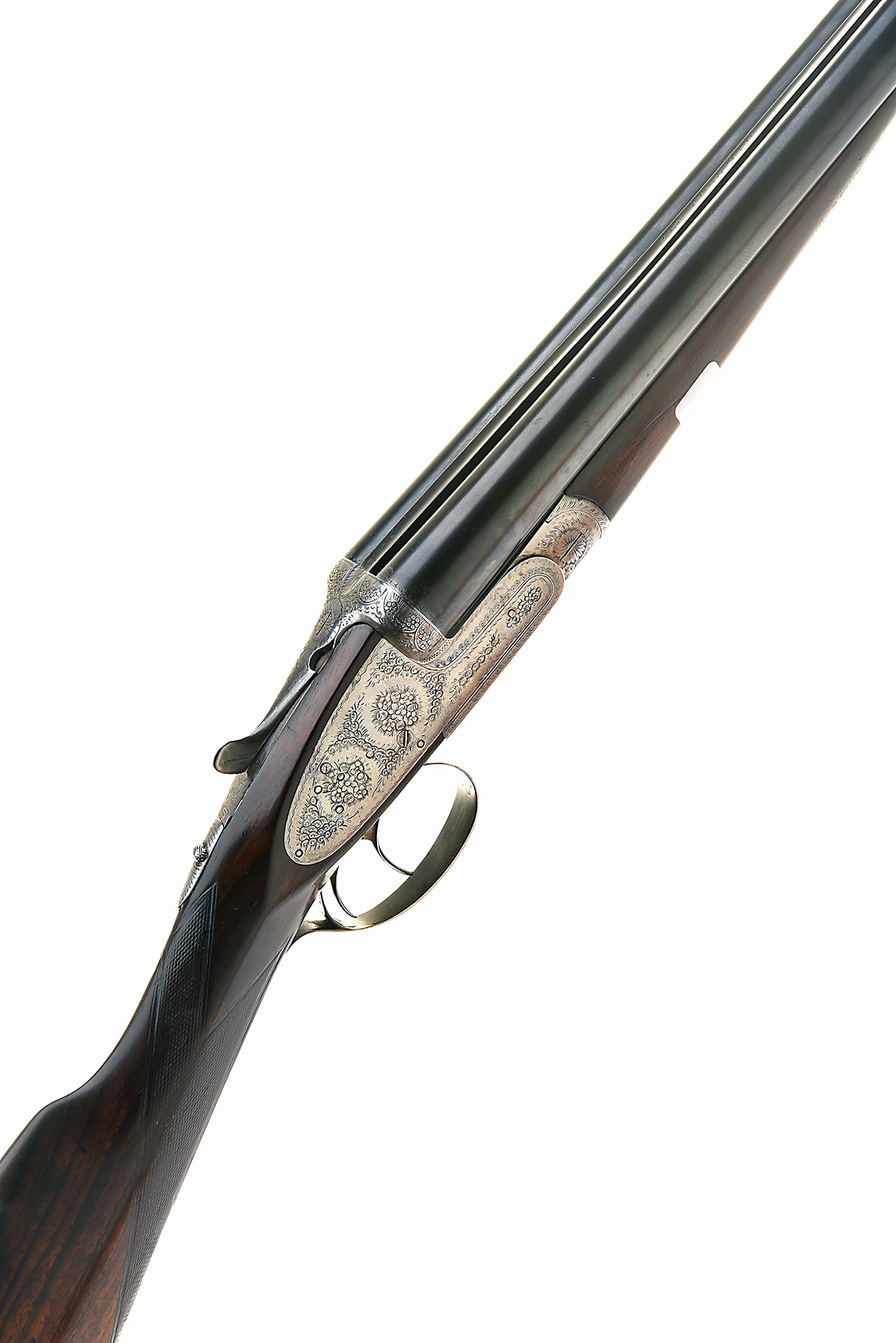 ARIETTA SIGNED COCHRANE 12-BORE SIDELOCK EJECTOR, serial no. 7590, for 1962, 26in. nitro chopperlump barrels, the rib engraved 'J ANDREW COCHRANE WISBECH', 2 3/4in. chambers, bored approx. imp. cyl. in both (possibly shortened), treble-grip action with hidden third bite, removable striker discs, automatic safety, articulated front trigger, floral and scroll engraving, bright finish, 15 3/8in. stock (slight sweep at comb) including 2in. wooden extension, crack to fore-end wood, weight 6lb. 8oz., in a nylon slip