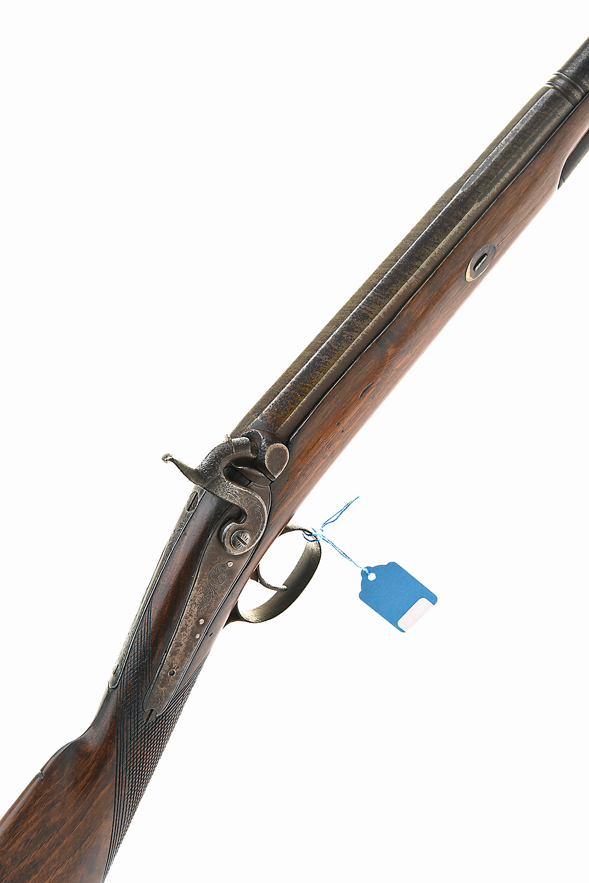 A 14-BORE PERCUSSION SINGLE-BARRELLED SPORTING-GUN MARKED ROWNTREE, no visible serial number,