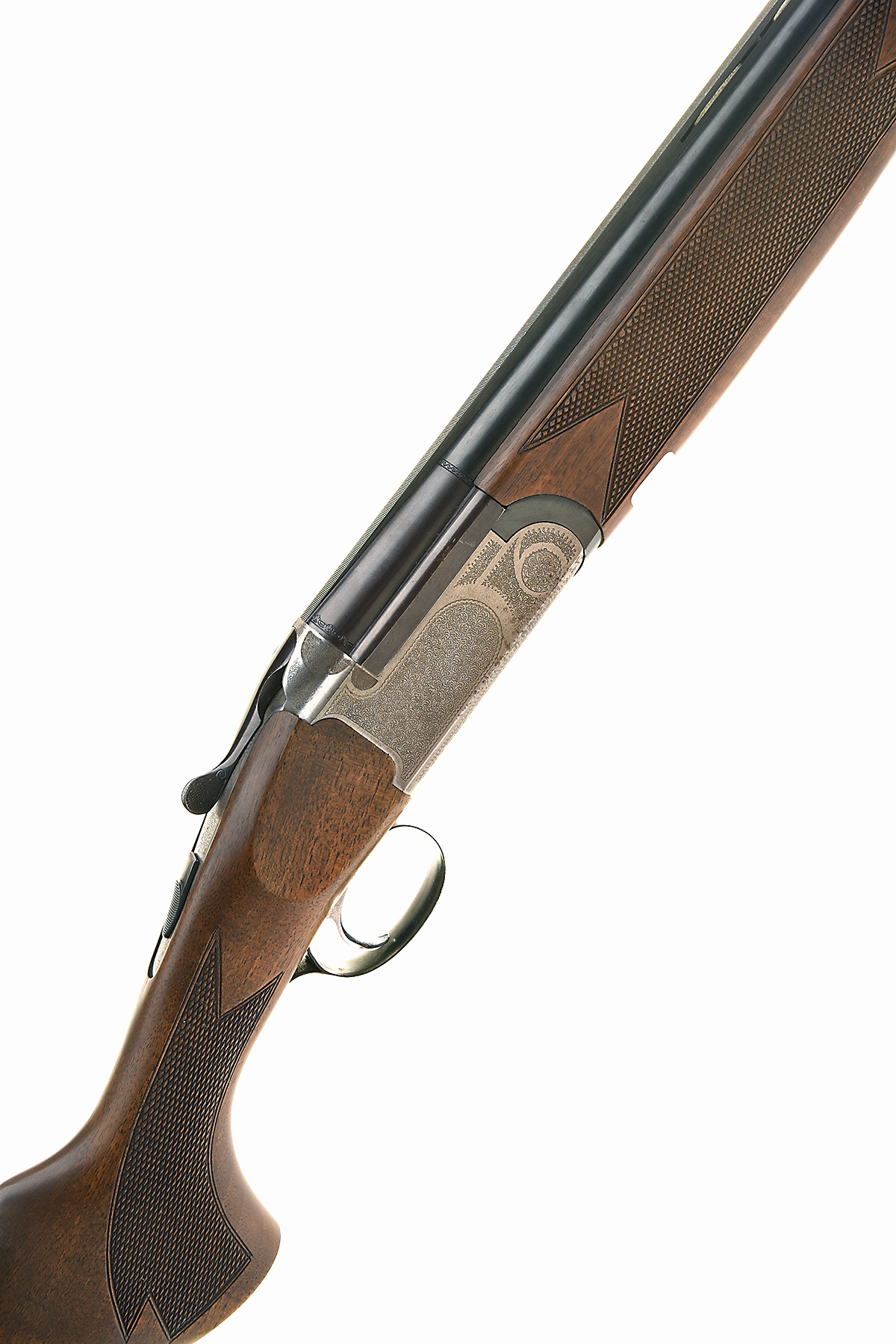 ARMI MAROCCHI 12-BORE SINGLE-TRIGGER OVER AND UNDER EJECTOR, serial no. 145867, dated 1986, 27 3/4in. nitro barrels with ventilated mid-rib and 7mm ventilated matt top-rib, 3in. chambers, multichokes (no spares), hold-open toplever, manual safety, acanthus scroll engraving, 14in. pistolgrip stock including buttplate