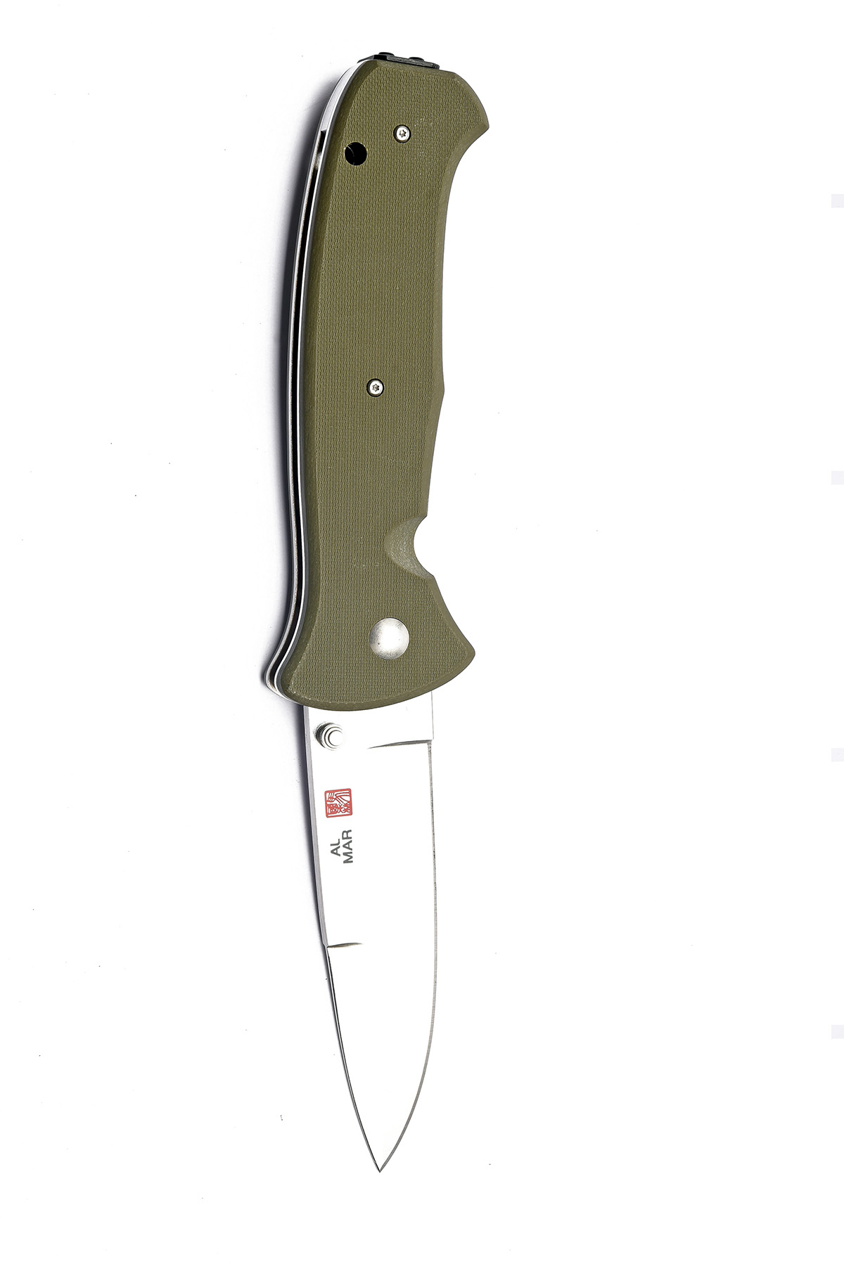 AN UNUSED 'AL-MAR' SERE 2000 FOLDING KNIFE IN BOX no. AMS2KOD, approx. 3 1/2in. VG10 stainless steel spear point blade, G10 scale handle in olive drab, in makers carton