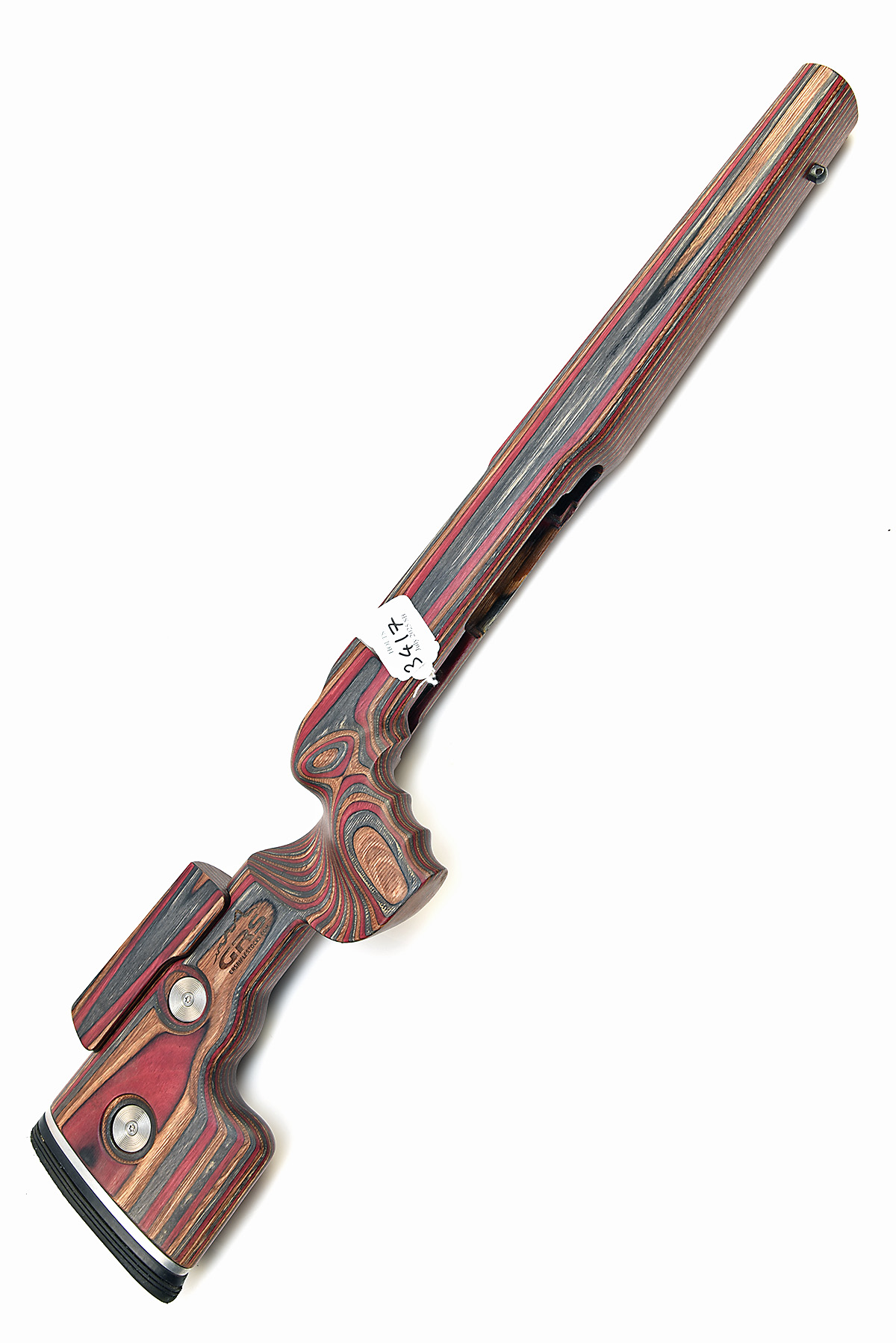 A UNUSED 'GRS SPORTER' LAMINATE STOCK FOR A 'HOWA 1500 SHORT ACTION', adjustable stock, in burgundy and wood, RH