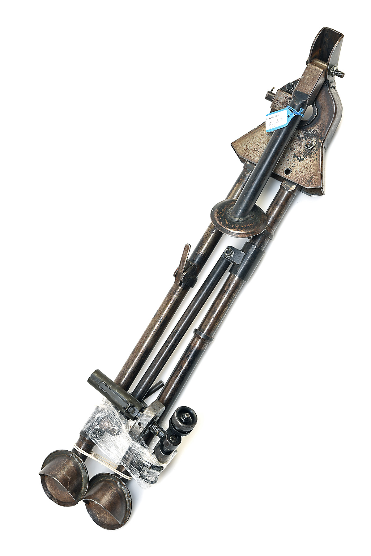 A RARE ORIGINAL WORLD WAR II U.S. BROWNING M1919A4 .30 CAL. M2 TRIPOD WITH PINTLE AND T&E ASSEMBLY, early-mid 20th Century, service -worn