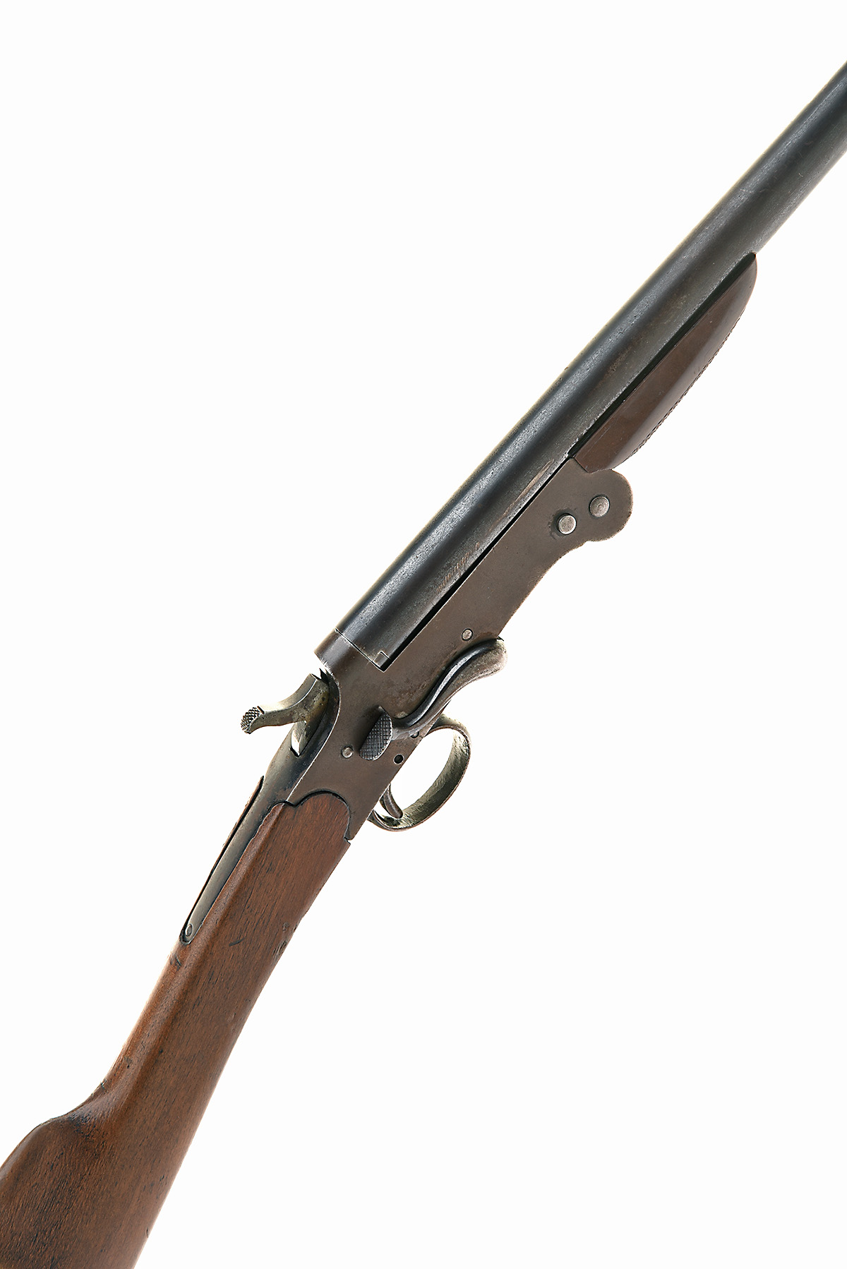 MODERN ARMS CO. LTD. .410 SINGLE-BARRELLED SIDELEVER FOLDING HAMMERGUN, serial no. 1449, circa 1930, 26in. nitro barrel, 2 1/2in. chamber, bored approx. true cyl., 14 3/8in. replacement stock