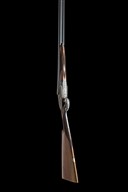 for 1980, 27in. nitro chopperlump barrels (some rust spotting), 2 3/4in. chambers, bored approx. 1/4 and 1/2 choke, engraved arcaded fences, removable striker discs, automatic safety with gold-inlaid 'S' detail, hand-detachable lockplates, gold-inlaid cocking-indicators, articulated front trigger, rolled-edge triggerguard, acanthus scroll engraving retaining virtually full original colour-hardening and finish, 14 1/2in. stock (heavy bruising to right side of stock), weight 5lb. 7oz.