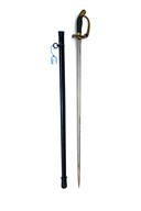 circa early 20th Century, with 30 3/4 in. single-edged nickelled blade with two narrow fullers on each side, ricasso marked with both the king's and knight's head marks for Weyersberg Kirschbaum & Co of Solingen plus 'W K &C', brass hilt with pierced folding guard featuring the Imperial Eagle, curved brass top pommel with brass wire bound faux fish-skin grip with crowned applied Wilhelm II monogram, leather hanger, black-painted scabbard with two suspension loops, blade with scratches and edge nicks, scabbard scratched with some rust patches and paint adhesion marks