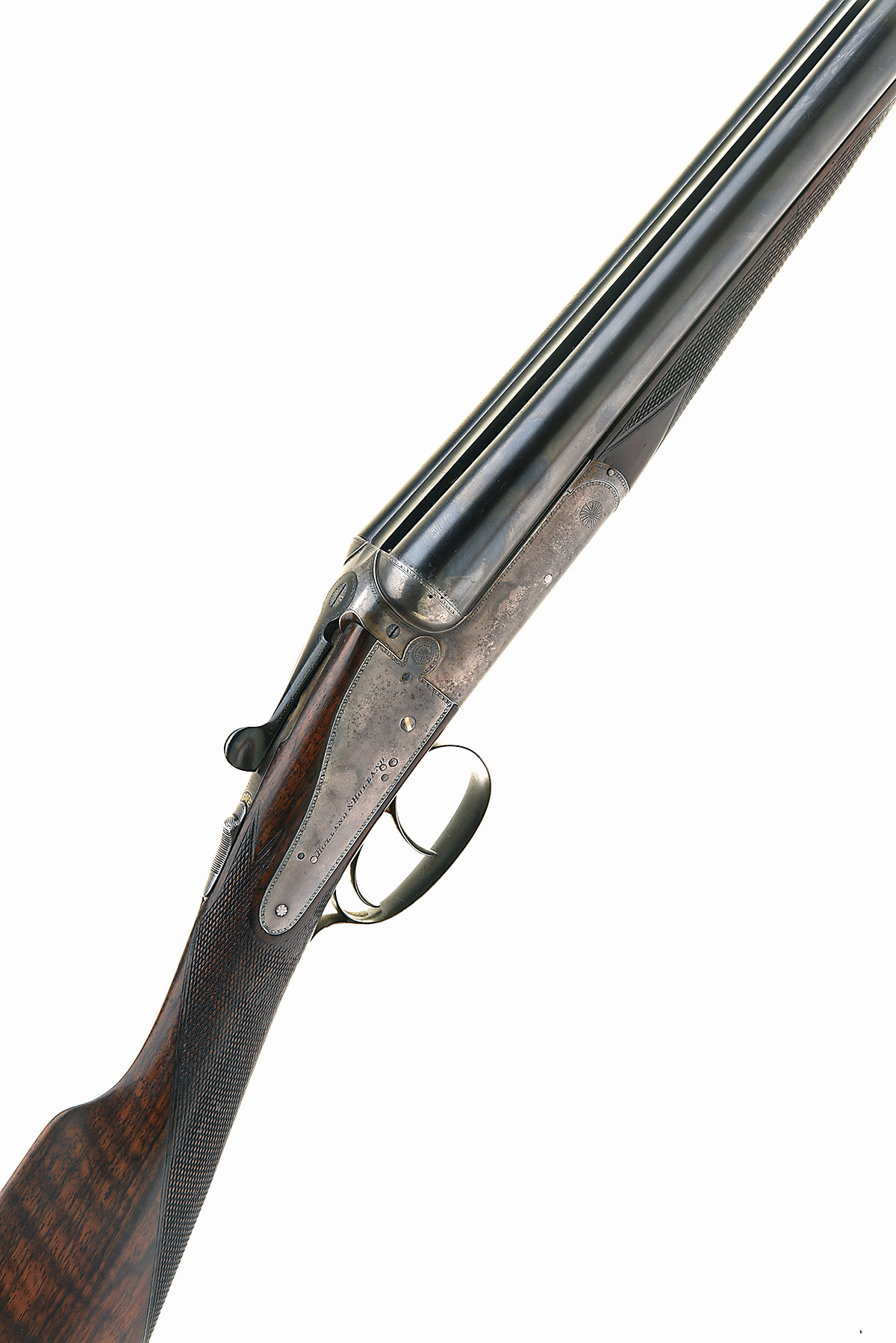 HOLLAND & HOLLAND 12-BORE 'NO.3 GRADE' HAND-DETACHABLE BACK-ACTION SIDELOCK EJECTOR, serial no. 263021, circa 1908. 28in. nitro barrels (slightly loose on action), the tubes engraved 'HOLLAND & HOLLAND. 98. NEW BOND STREET. LONDON.' (rubbed), 2 1/2in. chambers, bored approx. true cyl. and 1/2 choke, some marking and dents, gas checks, automatic safety with gold-inlaid 'SAFE' detail, hand-detachable back-action locks, gold-inlaid cocking-indicators, border engraving, retaining traces of colour-hardening and finish, 14 5/8in. stock (sweep at comb) including horn buttplate, fore-end with Deeley & Edge patent release, weight 6lb. 6oz., in its leather case