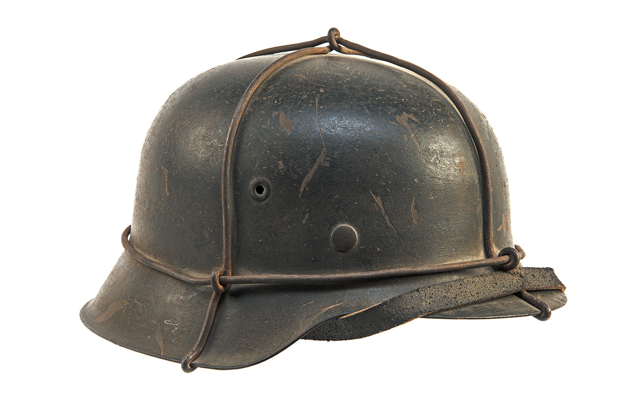 AN UNUSUAL GERMAN WORLD WAR II MODEL 1942 'RAW EDGE' STAHLHELM WITH CYRILLIC MARKING,