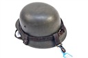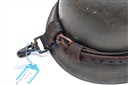 all original, shell in excellent condition and stamped 'hk064' and '3846', complete with laced buff leather liner stamped '56' in a circle, leather chin-strap and period external clip-on strapping