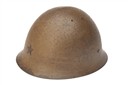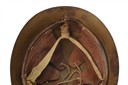 steel with greenish-brown finish with original star, complete with original brown leather liner with lacing, and full-length original chin laces