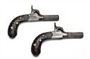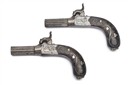 A GOOD PAIR OF CASED 50-BORE PERCUSSION DELUXE POCKET PISTOLS SIGNED C. PIPER, CAMBRIDGE, no visible serial numbers,