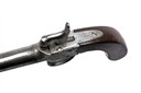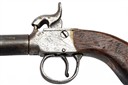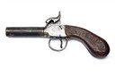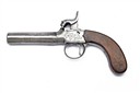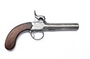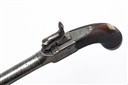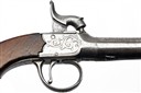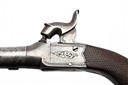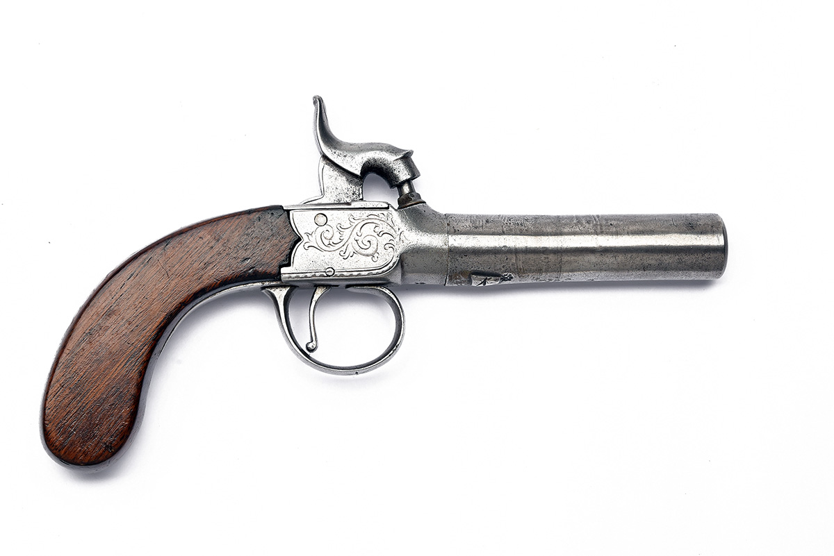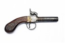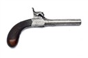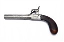 THREE UNSIGNED APPROXIMATELY 40-BORE BIRMINGHAM PROVED PERCUSSION POCKET-PISTOLS, no visible serial numbers, the first with frozen turn-off 3in. round profile barrel, squared boxlock action with central hammer and guarded trigger and smooth slab-sided walnut grip, the second with round 3 1/4in. frozen turn-off barrel, central hammer boxlock action with folding automatic trigger and chequered bag-shaped grip, the last with round 2 1/2in. frozen barrel, plain boxlock central hammer action, guarded trigger and replacement walnut grip, all approximately 1840 in date (3)