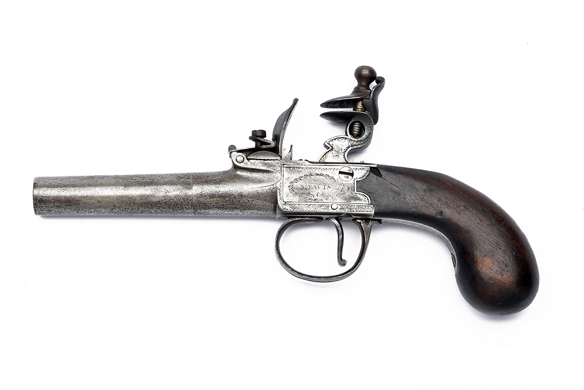 A 50-BORE FLINTLOCK POCKET-PISTOL SIGNED MEWIS & CO., no visible serial number,
