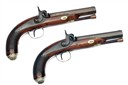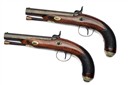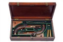 A CASED PAIR OF 20-BORE PERCUSSION RIFLED TRAVELLING PISTOLS, UNSIGNED, no visible serial numbers,