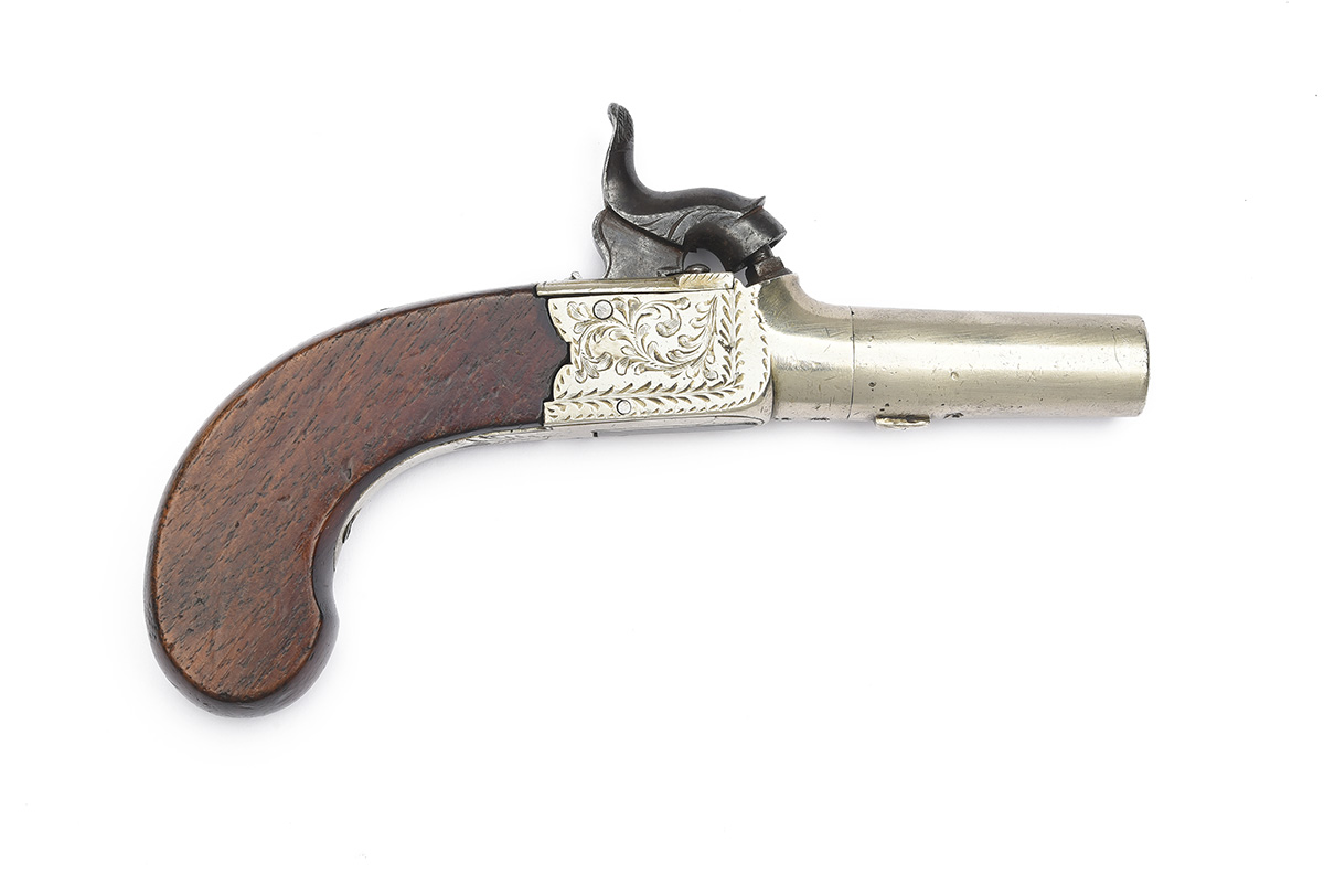 AN INTERESTING 54-BORE PERCUSSION PAKTONG POCKET PISTOL SIGNED COCKER, GLASGOW, no visible serial number,