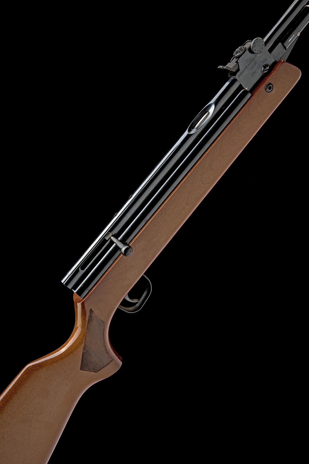 circa 1982, with mirror-blued 18in. barrel, black crackle-finish tunnel fore-sight with provision for interchangeable elements (absent), integral elevating and windage-adjustable rear-sight, the left hand side protector stamped 'PAT PENDING REG. DESIGN', the right hand side with maker and model details, mirror-blued bolt housing railed for a telescopic sight, mirror-blued air-chamber, beech pistol-gripped half-stock with pressed chequering, rubber ventilated recoil pad and colour-hardened trigger with black crackle-finished trigger-guard bow, light marks to wood otherwise appearing little used