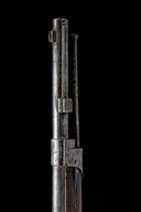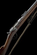 dated for 1868, with 32 1/2in. barrel (cleaned of finish), block and blade fore-sight, elevating ladder rear-sight, octagonal form receiver signed by the maker with model designation and date, straight bolt-handle with bulbous tip, chequered cocking-piece, walnut full-stock with matching serial number, iron furniture, iron clearing-rod and fitted with an improvised leather sling