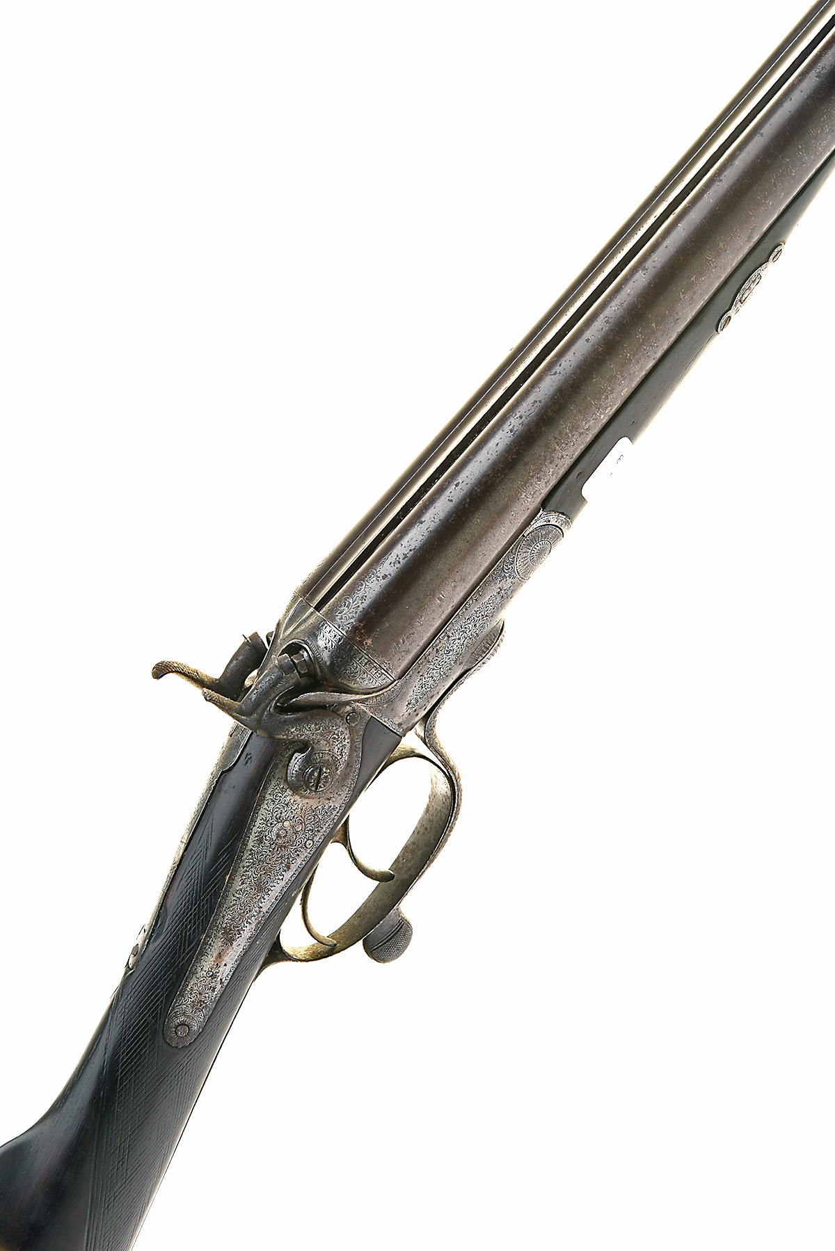 E. WHISTLER 12-BORE ROTARY-UNDERLEVER HAMMERGUN, serial no. 4580 circa 1890, 28 1/2in. black powder damascus barrels (pitted), 2 1/2in. chambers, bored approx. true cyl. in both, poor condition