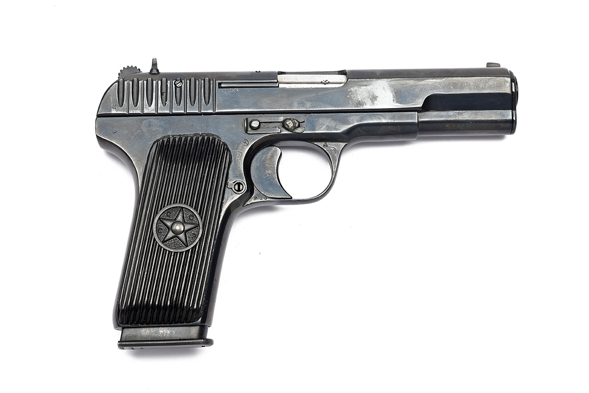 UK BUYERS ONLY A DEACTIVATED 7.62X25 (TOK) SEMI-AUTOMATIC TOKAREV SERVICE-PISTOL, serial no. 44098, dated for 1937, with 4 1/2in. barrel, blued slide, blued frame and ribbed black plastic grips, in a leather holster with spare magazine and some dummy rounds, much finish remaining, with its EU deactivation certificate