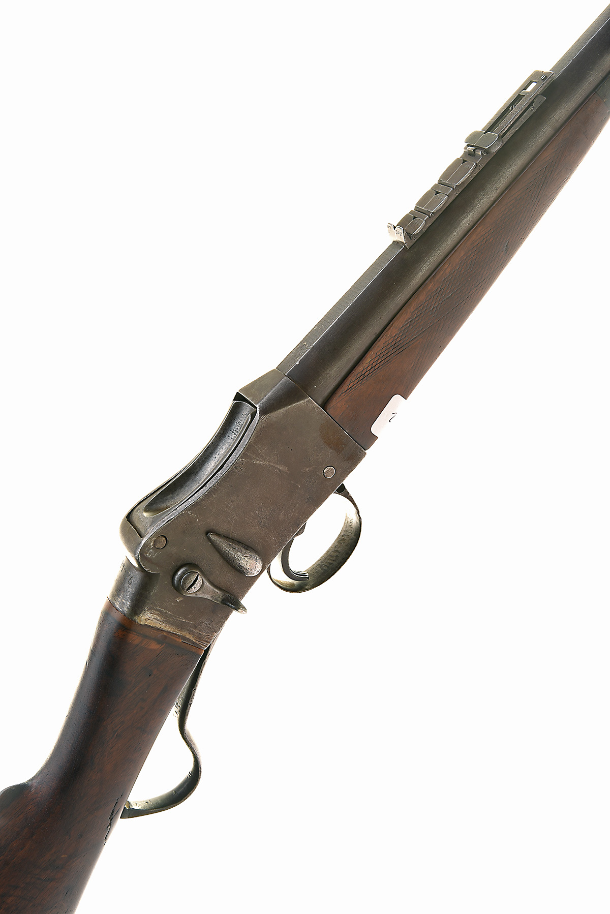 * A .577/450 MARTINI-HENRY SPORTING RIFLE, SIGNED J.S.F. BOTHA, no visible serial number, circa 1870s, with 28 1/2 in. sighted barrel with Birmingham proof-marks, falling block action with South African registration number 'WR89976', left side of receiver stamped with 'MADE IN ENGLAND FOR J.S.F. BOTHA / CAPE TOWN' within a circular belt, chequered forend with horn cap, worn, forend chequering smoothed, butt with wood filler where butt joins the receiver, chipped loss and heel, butt-plate rusted and dented, modern sling swivel in heel