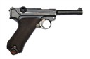 the pistol dated for 1915, with blued 4in. barrel, blade fore-sight, dated nocksform, 'DWM' manufacturer's mark to the top of toggle, blued receiver and frame, chequered walnut grips, provision for stockboard and wood based magazine, all matching numbers except magazine and with a certificate of proof