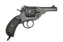 dated for March 1900, with 4in. barrel, integral ramp and crescent fore-sight, stirrup barrel latch to the break-open frame, fluted automatic ejecting six-shot cylinder, double action mechanism and chequered hard rubber birdshead grips with lanyard ring at heel, traces of thinning finish with some staining