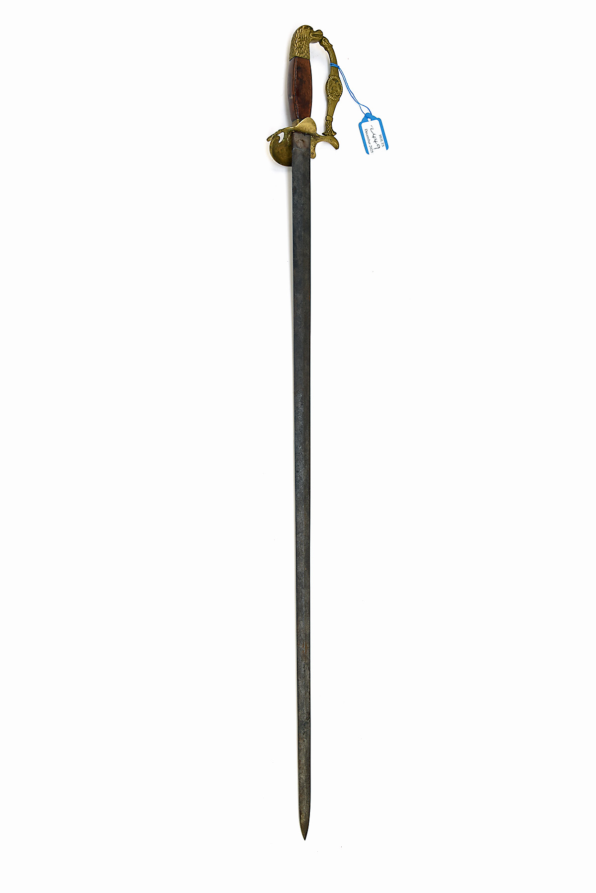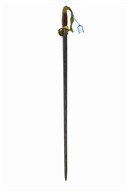 * A CONTINENTAL BANDSMAN'S SWORD, possibly French, circa late 19th Century, with 29 1/2 in. double-edged blade, cast brass hilt, guards with bandsman's lyre and wolf's head pommel, wooden grip, worn with no apparent markings, blade stained, knuckle-guard bent, no scabbard