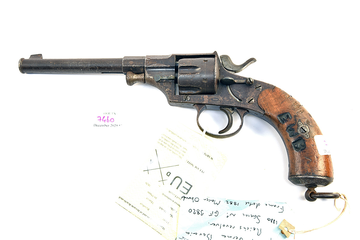 A DEACTIVATED GEBR. MAUSER & CIE. OBERNDORF 10.6mm (GERMAN ORDNANCE) 'MODEL 1883 COMMISSION' SERVICE REVOLVER, serial no. GF3820, dated 1880, 7 1/8in. stepped octagonal to round barrel with integral blade fore-sight, solid frame with side safe, six-shot fluted cylinder,swept walnut grip, together with its EU deactivation certificate