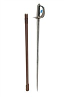 A TANZANIA POLICE PATTERN 1897 DRESS SWORD BY WILKINSON, SERIAL NUMBER 95408, serial number dates to 1969, 32 1/2 in. nickeled etched blade with Wilkinson address on ricasso, pierced steel guard with Tanzania Police cypher, wire bound plastic grip, brown leather scabbard, a few spots of tarnish on the blade