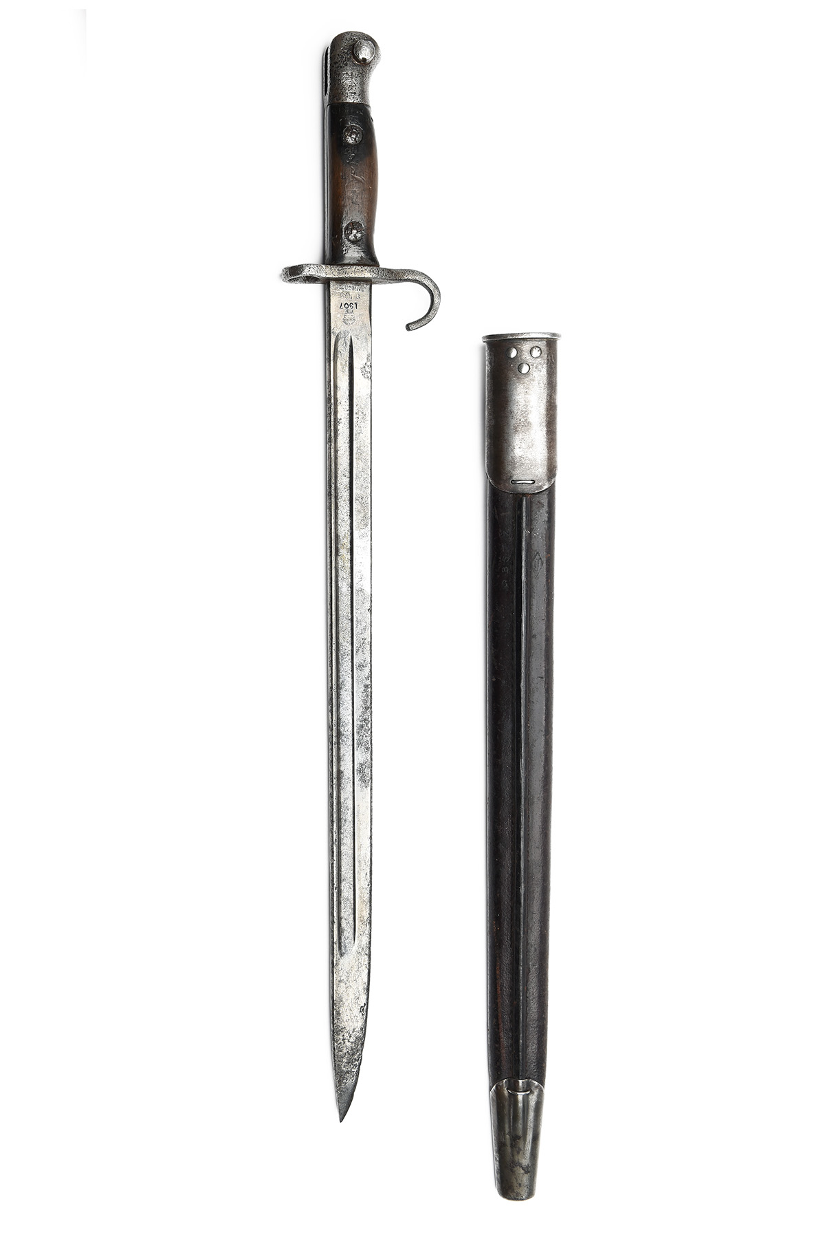 A BRITISH PATTERN 1907 BAYONET WITH QUILLION, SIGNED SANDERSON,