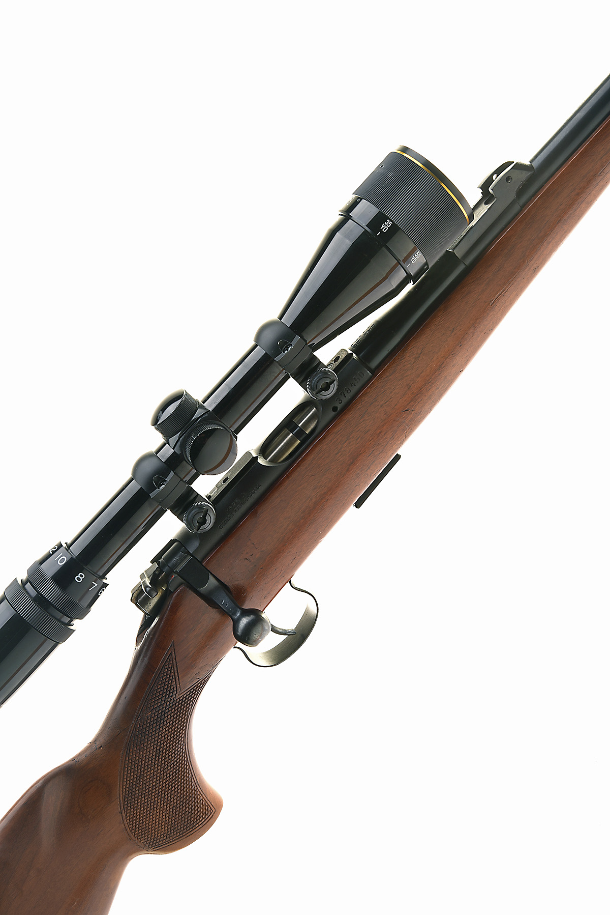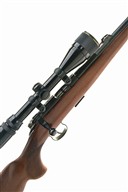 BRNO ARMS .22 L.R. 'MOD 2-E' BOLT-MAGAZINE SPORTING RIFLE, serial no. 378450, for 1987, 24 3/4in. nitro barrel with threaded muzzle and thread cap, rear sight removed, ramped blade fore-sight with tunnel protector, receiver fitted with a Nikko Stirling Silver Crown 4-12x40 telescopic sight, manual safety, detachable magazine, pistolgrip halfstock (cracked through and repaired at hand), 14in. pull including buttplate, in a slip