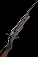 circa 1937, with sighted detachable 25 1/2in. barrel, rotating bolt barrel-lock, folding 'H' frame peep-sight to rear of receiver, push-button barrel release to the barrel cradle, plain air chamber stamped with the model details to the left side and five lines of patents to the right, trigger unit with manufacturer's details and no provision for safety catch, chequered walnut semi pistol-grip saw-handled butt-stock and no provision for fore-end, fair traces of original finish remaining