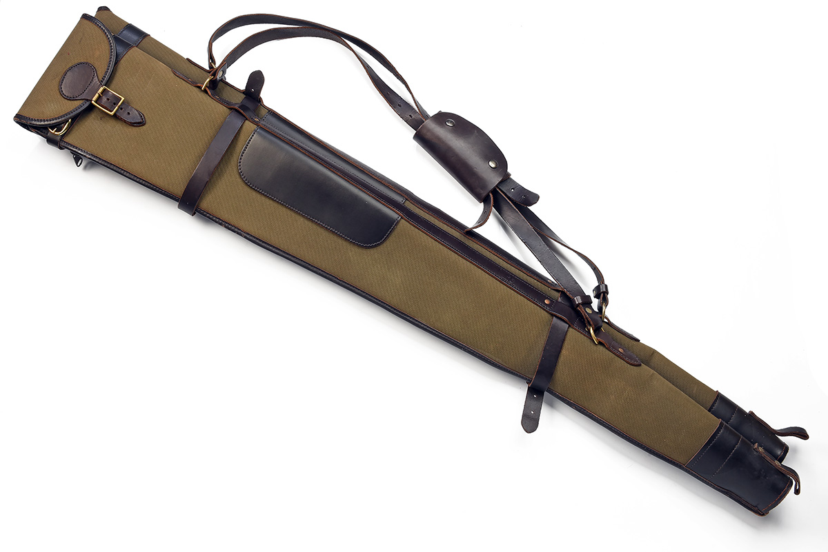 A FLEECE-LINED CANVAS AND LEATHER DOUBLE GUNSLIP,