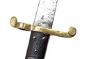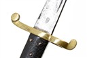 A RARE PATTERN 1855 LANCASTER SAPPERS AND MINERS SWORD BAYONET, late 1850s, with 24 in. pipe-backed blade, ricasso with Kirschbaum 'knight's head' trademark on one side, with Solingen and Birmingham inspection marks over, brass cross-guard dated '2/86' pressed leather grips, brass pommel stamped 'M.S.C.' [Medical Staff Corp] with their serial number '3391', together with an associated period brown leather with brass fittings scabbard which is not original to the bayonet and is slightly to short for the blade