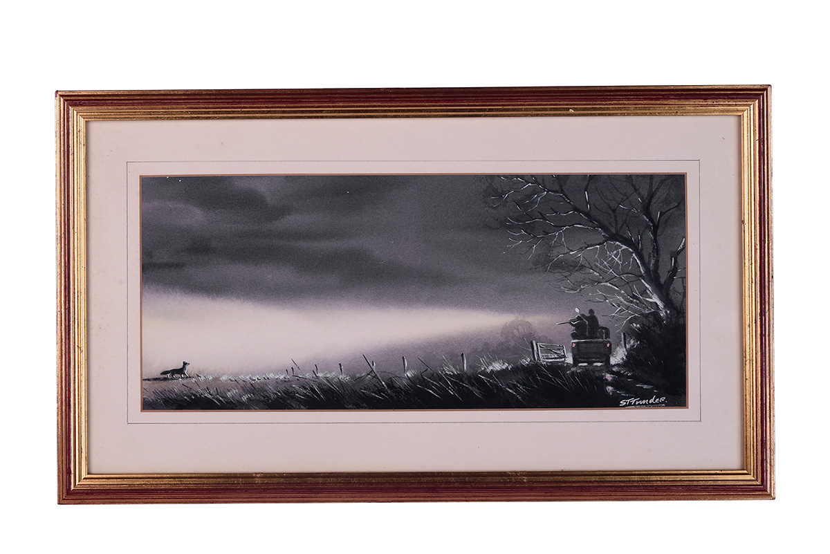 SIMON TRINDER (Contemporary): LAMPING An original watercolour, signed by the artist, framed (17in. x 10in. inc. frame)