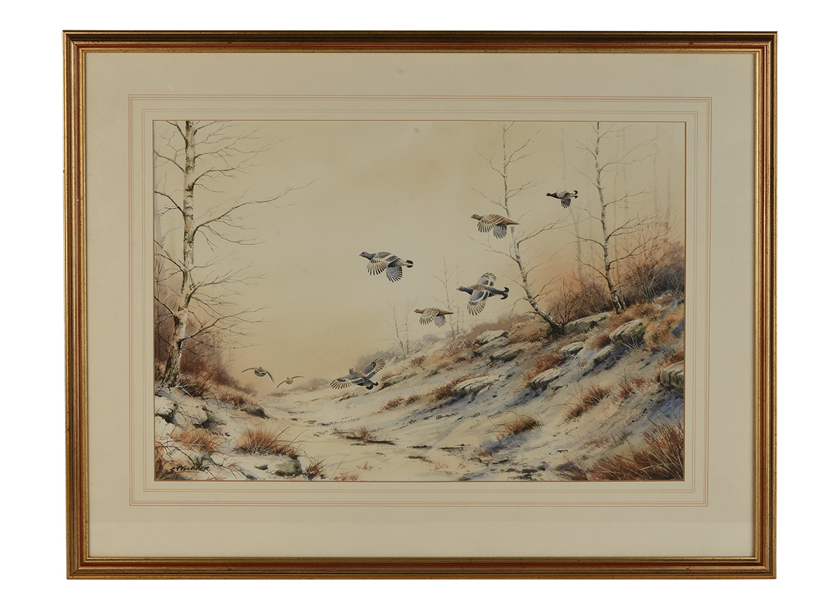 SIMON TRINDER (BRITISH CONTEMPORARY): 'BLACKCOCK BREAKING COVER'