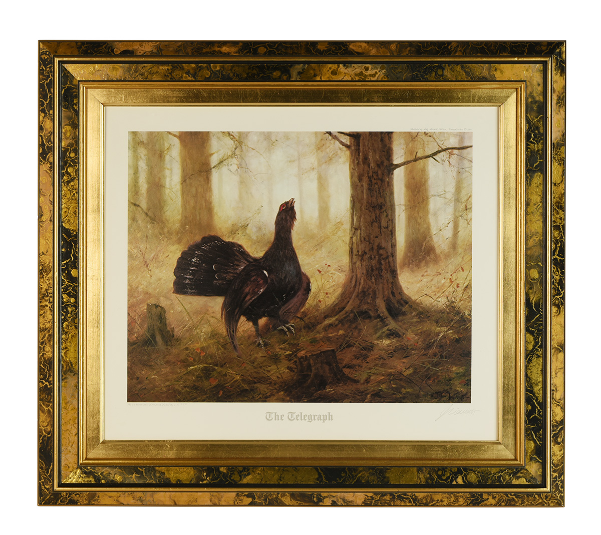 'THE TELEGRAPH' (Unknown artist), a Capercaillie in the Caledonian forest; limited edition print (No. 350 850) framed (28in. x 25in. inc. frame)