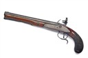 circa 1790, with octagonal slightly swamped 10in. barrel, the top-flat with traces of signature, applied white metal fore-sight, shallow notch rear-sight to the engraved top-tang, flat bevel-edged lock signed 'ALLEY', stepped pointed and engraved tail, swan-necked cock, roller frizzen and semi rainproof pan with gold-lined touch-hole, walnut full-stock with coarsely chequered bag-shaped grip (cracked through and repaired at wrist), single set trigger with spurred guard, iron furniture and horn-tipped ramrod, the whole darkly stained